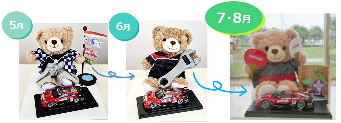 9月からはどんな衣装か…ご来場の際は、期間限定の可愛らしい日産ベアの姿にもぜひご注目ください。